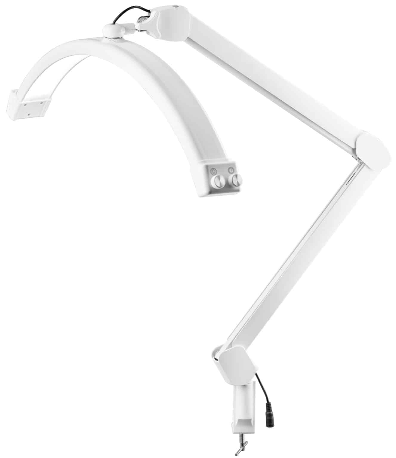 מנורת MoonLight מקצועית עם תפס שולחני, המעניקה תאורה היקפית ללא צל ונוחות מקסימלית בעבודה.